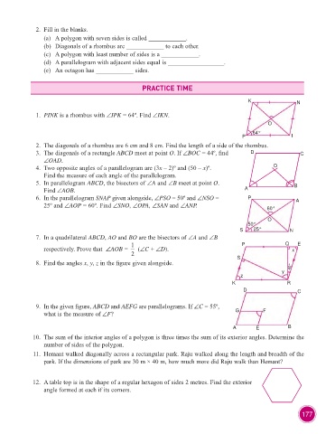 4. Two opposite angles of a parallelogram are (3x – 2)º and (50 – x)º. O
