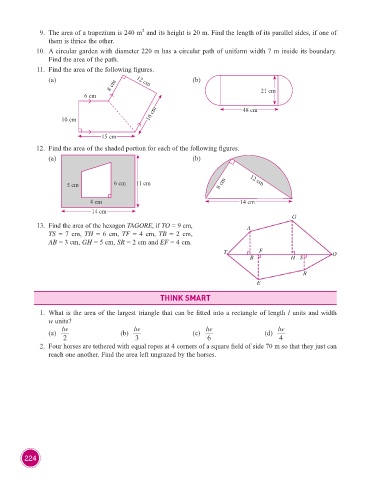 10. A circular garden with diameter 220 m has a circular path of uniform width 7 m inside its boundary.