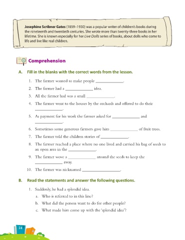 6. Sometimes some generous farmers gave him _____________ of fruit trees.