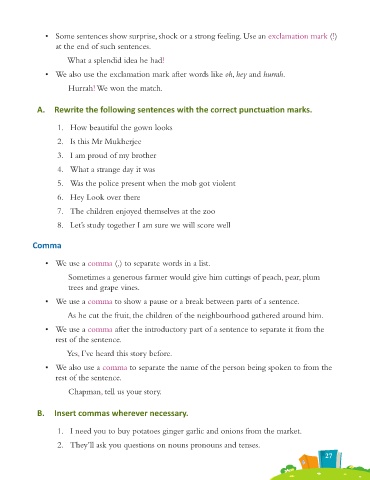 A. Rewrite the following sentences with the correct punctua on marks.